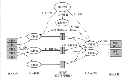 Reduce操作——对每个Map所产生的一部分中间结果进行合并操作,每个Reduce所处理的Map中间结果是互不交叉的,所有Reduce产生的最终结果经过简单连接就形成了完整的结果集.