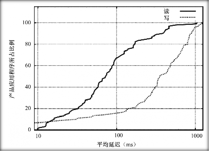 应用程序的平均读取延迟在万分之一毫秒之内,平均写入延迟在100至400毫秒之间