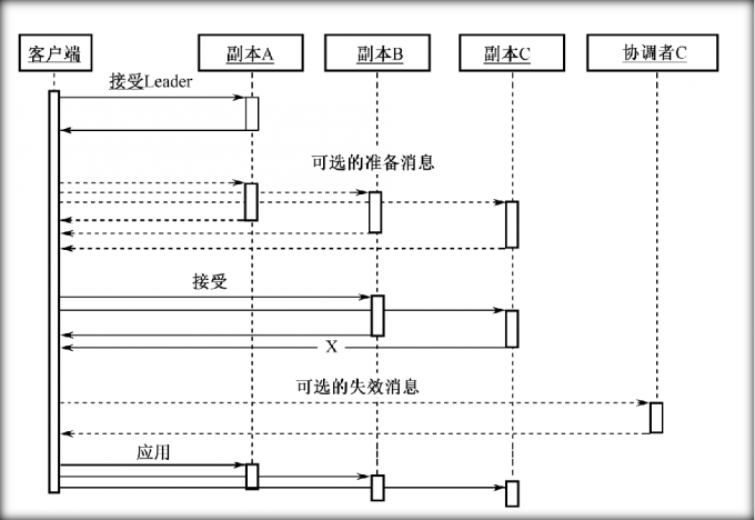 接受leader→准备→接受→失效→生效