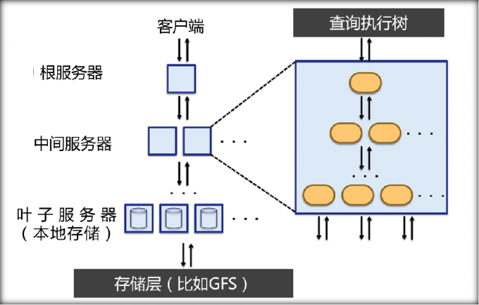 Dremel利用多层级服务树(multi-level service tree)的概念来执行查询操作