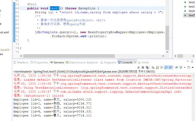 Employee employee = jdbcTemplate.queryForObject(sql, new BeanPropertyRowMapper<Employee>(Employee.class), 5);