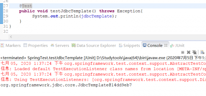 JdbcTemplate的使用需要在applicationContext.xml中进行配置