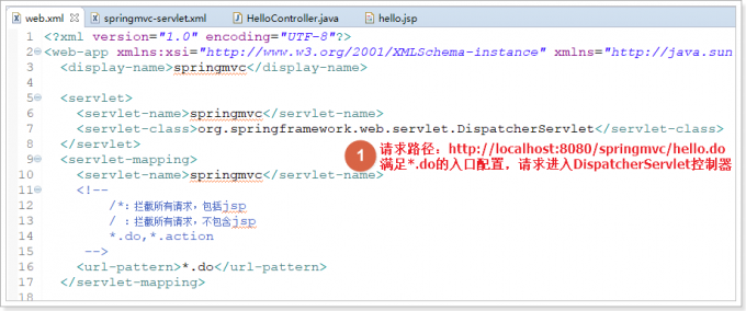 这时就需要在web.xml中去指定springMVC的存放路径,配置方式: