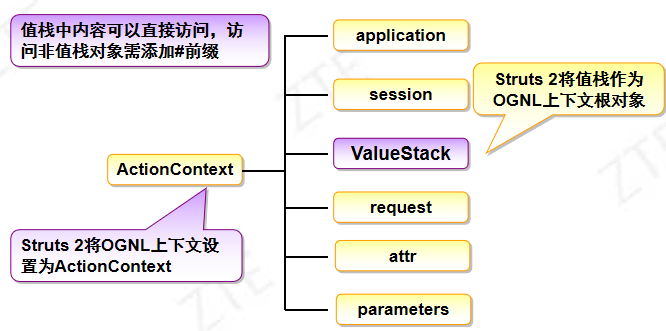值栈包含Map栈和对象栈,值栈通过ActionContext的getValueStack()方法来获取值栈,但是在通常情况下,向valuestack中压入值都是由Struts2去完成的,而访问valuestack多是由OGNL去获取,实际向valuestack压入值的情况并不多。