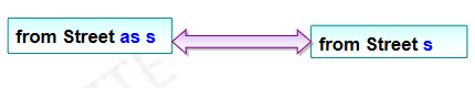 s 是Street 的别名,通过as 关键字指定,关键字as 是可选的