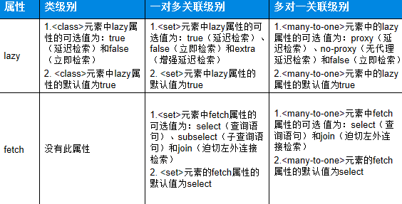 、 单端关联上,可以取值:false/proxy/noproxy - Session.load()方法支持lazy,而session.get()不支持lazy;