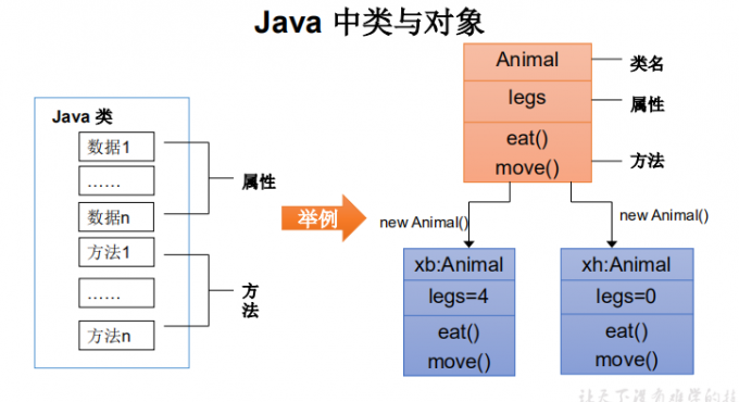 - 对象是实际存在的该类事物的每个个体,因而也称为实例(instance)。