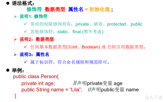 - 编写类的属性(考虑修饰符、属性类型、属性名、初始化值)