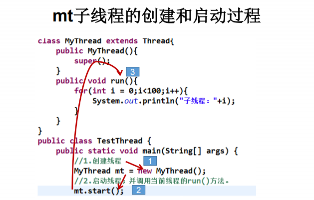 - 通过该Thread对象的start()方法来启动这个线程,而非直接调用run()