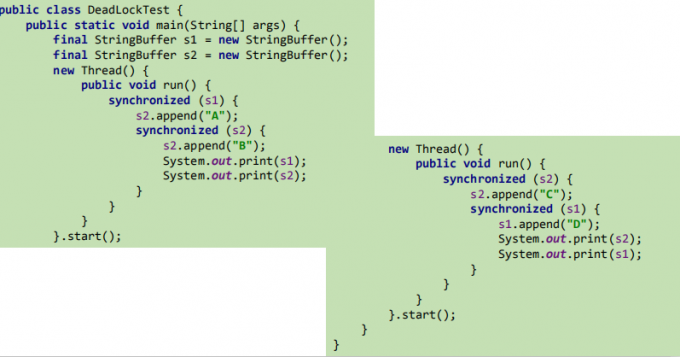class NumberThread implements Runnable{ @Override public void run() { for(int i = 0;i <= 100;i++){ if(i % 2 == 0){ System.out.println(Thread.currentThread().getName() + ": " + i); } } } } class NumberThread1 implements Runnable{ @Override public void run() { for(int i = 0;i <= 100;i++){ if(i % 2 != 0){ System.out.println(Thread.currentThread().getName() + ": " + i); } } } } public class ThreadPool { public static void main(String[] args) { //1. 提供指定线程数量的线程池 ExecutorService service = Executors.newFixedThreadPool(10); ThreadPoolExecutor service1 = (ThreadPoolExecutor) service; //设置线程池的属性 // System.out.println(service.getClass()); // service1.setCorePoolSize(15); // service1.setKeepAliveTime(); //2.执行指定的线程的操作。需要提供实现Runnable接口或Callable接口实现类的对象 service.execute(new NumberThread());//适合适用于Runnable service.execute(new NumberThread1());//适合适用于Runnable // service.submit(Callable callable);//适合使用于Callable //3.关闭连接池 service.shutdown(); } }