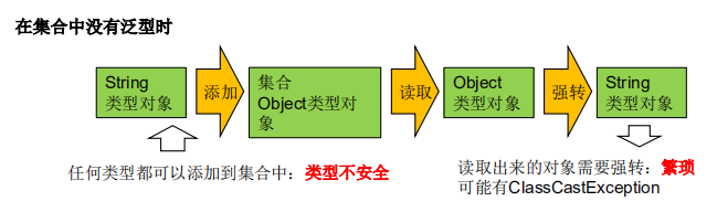 - 把一个集合中的内容限制为一个特定的数据类型,这就是generics背后的核心思想