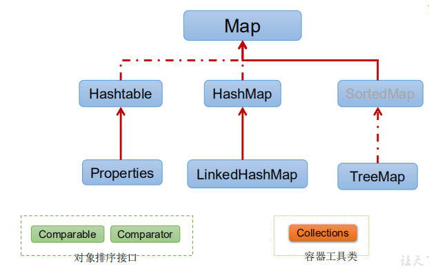 - 定制排序:创建 TreeMap 时,传入一个 Comparator 对象,该对象负责对TreeMap 中的所有 key 进行排序。此时不需要 Map 的 Key 实现Comparable 接口