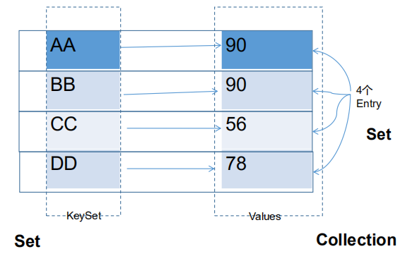 - Map接口:双列数据,保存具有映射关系“key-value对”的集合–>高中函数:y = f(x)