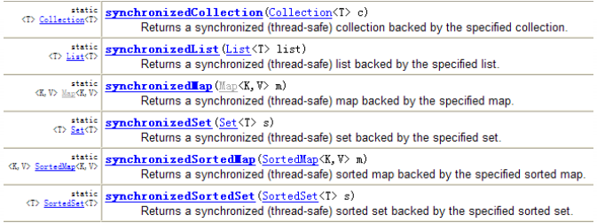Collections 类中提供了多个 synchronizedXxx() 方法,该方法可使将指定集合包装成线程同步的集合,从而可以解决多线程并发访问集合时的线程安全问题